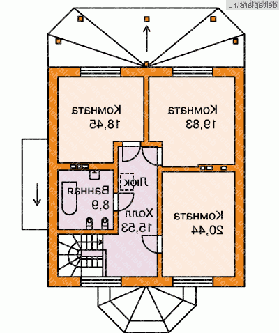 ПЛАН ДОМАцоколь высота: 2.5 м![]() 1-й этаж высота: 3.0 м ![]() мансарда высота: 1.8 - 2.8 м ![]() |