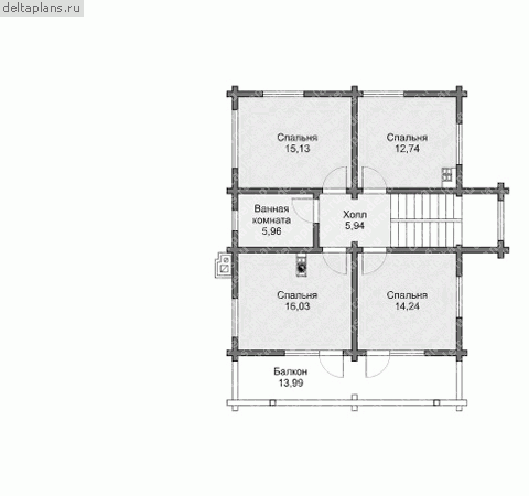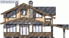 Для заказчиков, желающих жить в красивом добротном жилье, предлагаем рассмотреть дом с мансардой из бруса. Проект предусматривает пристройку просторной угловой террасы и навеса для машины. Комбинированный дом из кирпича и бруса представляет собой сочетание различных материалов, используемых для возведения наружных стен. Прочный кирпич идет на постройку первого этажа, более легкая древесина прекрасно подходит для строительства второго этажа, уменьшая нагрузку на фундамент. Кроме того, такой тандем, обладая внешней привлекательностью, позволяет сделать строительство более экономичным. Следует учесть, что эффектный и оригинальный вид зданию придает также отделка натуральным камнем цоколя и оштукатуренных поверхностей первого этажа. Планировочное решение предполагает размещение общественной зоны дома на первом этаже. Туда входят: объединенные столовая и гостиная с камином и выходом на террасу, кухня, гостевая спальня, которую можно использовать как кабинет или дополнительную спальню для пожилого родственника, просторный холл с междуэтажной лестницей, прихожая и тамбур при входе, где можно разместить стандартные шкафы для верхней одежды. Зона отдыха включает в себя сауну с гигиеническим блоком. Помимо этого, тут находятся помещения хозяйственного назначения: кладовая, размещенная под лестницей, и котельная, в которую можно попасть как с террасы, так и из прихожей. Второй этаж предполагает приватную зону, включающую в себя четыре попарно смежные спальни, разделенные общей ванной комнатой и небольшим холлом.
